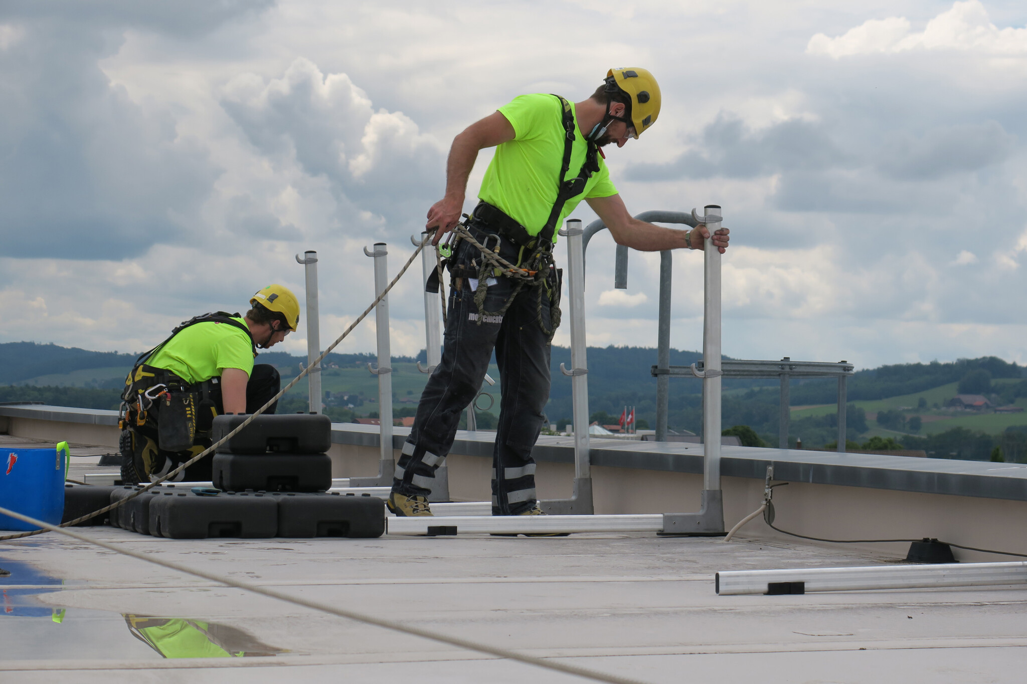 Als Kollektivschutz werden Absturzsicherungen bezeichnet, welche alle Personen in absturzgefährdeten Bereichen ohne zusätzliche Ausrüstung sichern. Darunter fallen beispielsweise Geländer, Gerüste oder Auffangnetze. Typische Einsatzorte sind Dächer, Treppen, technische Installationen (z.B. Photovoltaikanlagen, grosse Maschinen) oder Brücken. Dank unserer kompetenten Partner und der Möglichkeit in unserer firmeneigenen Werkstatt massgefertigte Teile selbst herstellen zu können, haben wir garantiert auch für Sie die richtige Lösung.